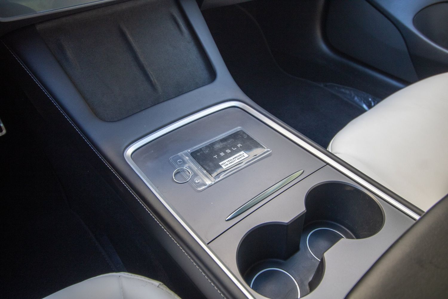 Floor console storage: Covered floor console storage